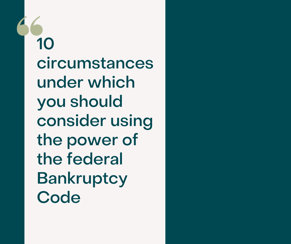 Life is stressful enough without having to live with persistent debt. Since most schools do not teach the options under bankruptcy, and most on the street do not adequately understand what is involved, you should seek experienced counsel when making such a consideration. This article is thus intended to provide you with ten circumstances under which you should consider using the power of the federal Bankruptcy Code.